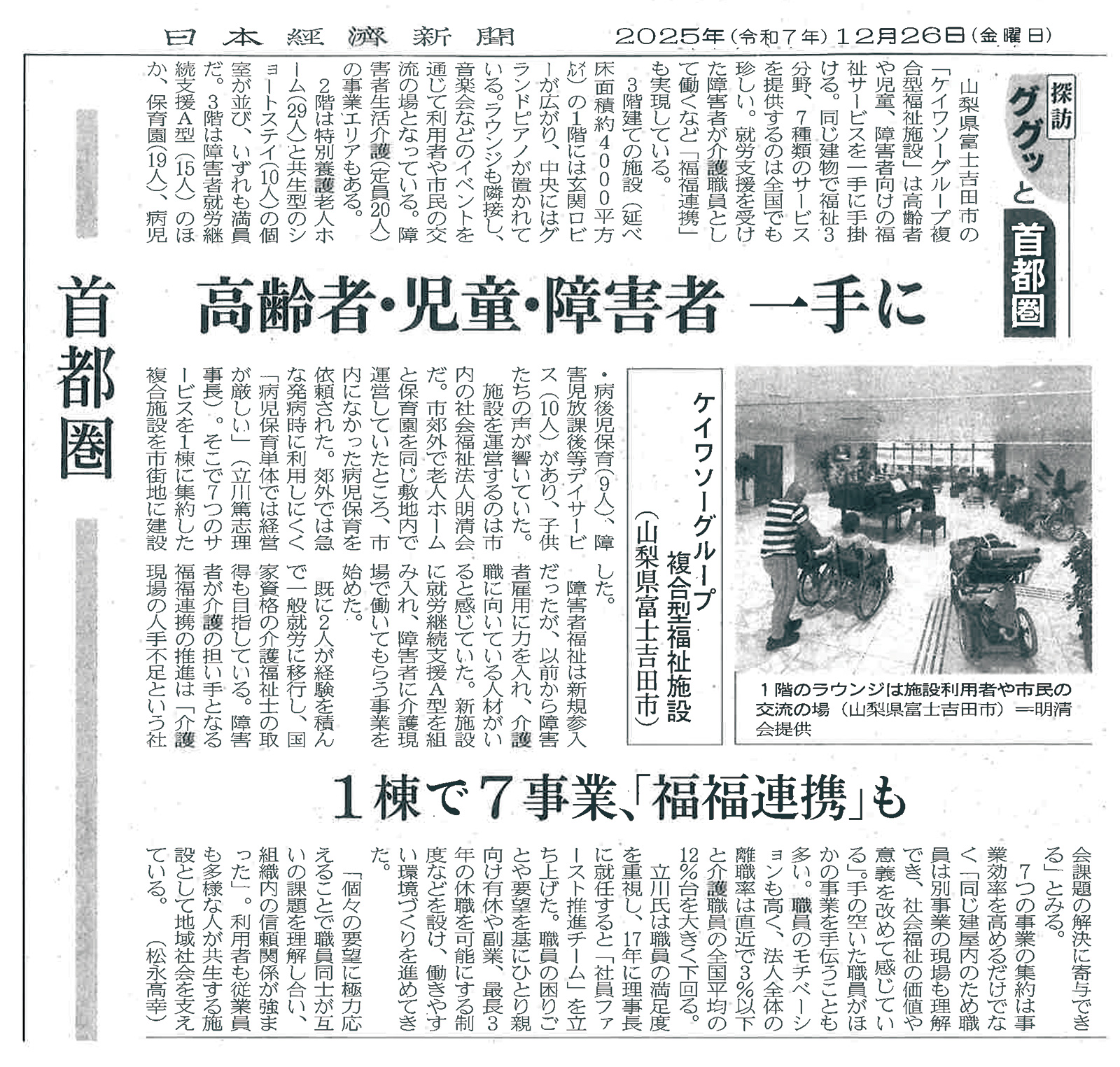 複合型福祉施設の取り組みと「福福連携」の成果を取り上げていただきました。